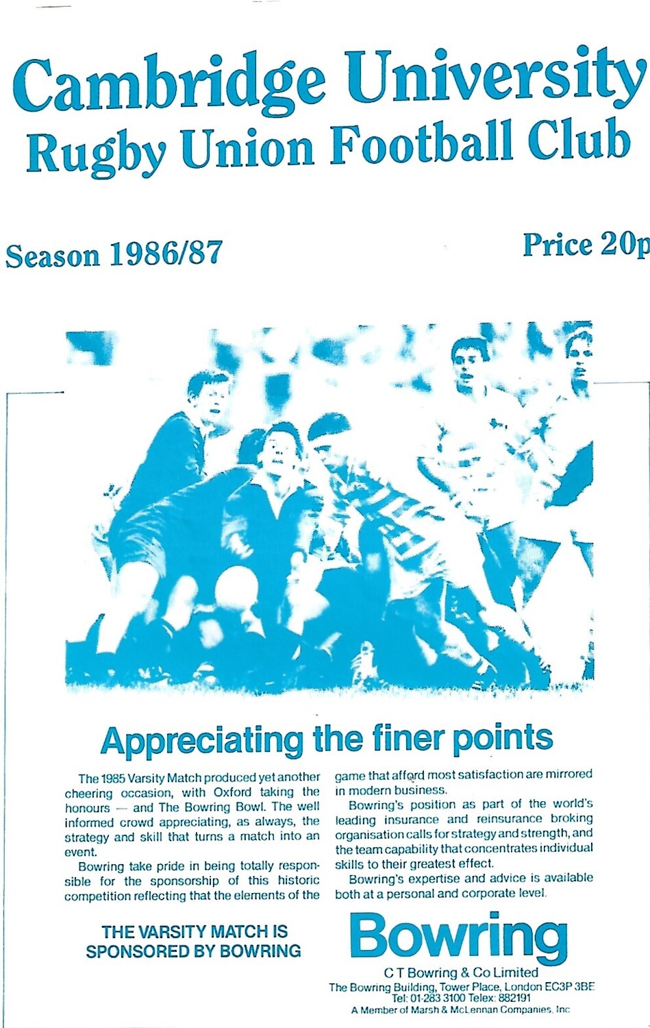 1986/87 Cambridge University v Nottingham (11/10/1986) Rugby Union Programme