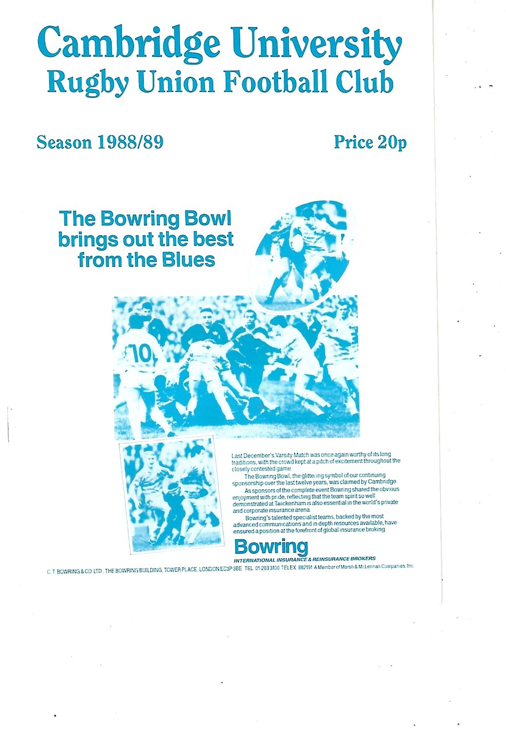 1988/89 Cambridge University v Army (08/02/1989) Rugby Union Programme