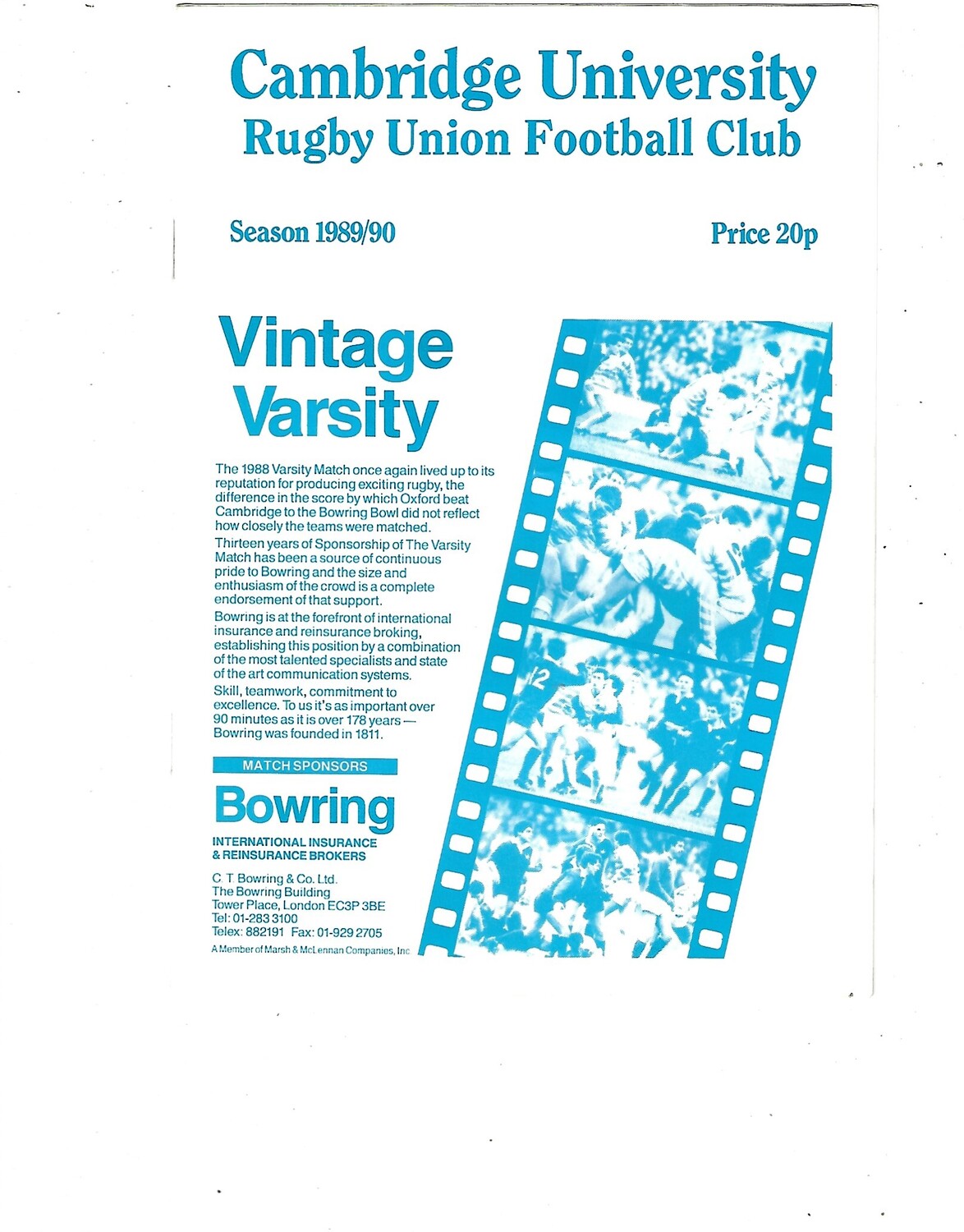 1989/90 Cambridge University v M.R Steele-Bodger's XV (29/11/1989) Rugby Union Programme