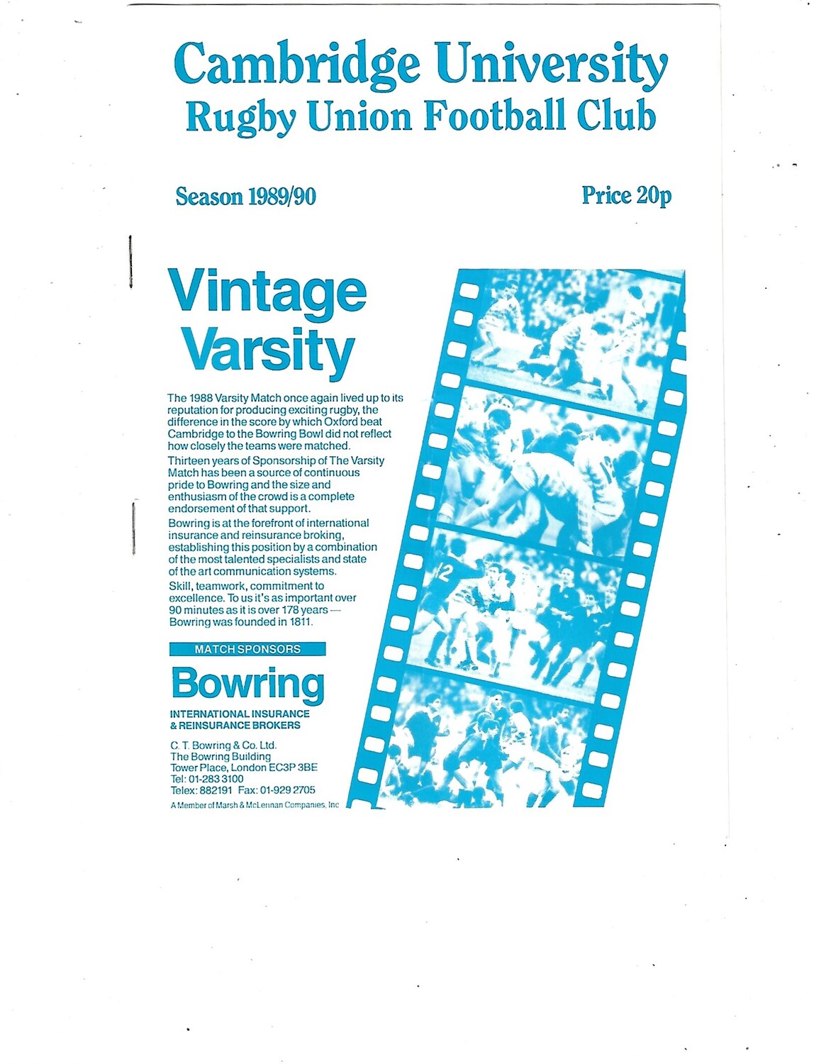 1989/90 Cambridge University v Neath (25/11/1989) Rugby Union Programme