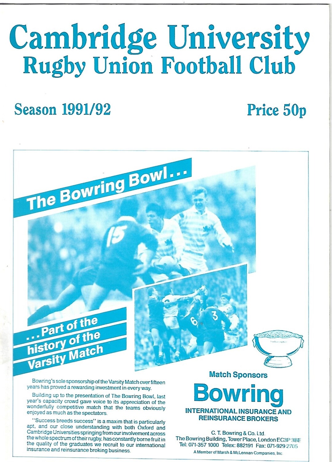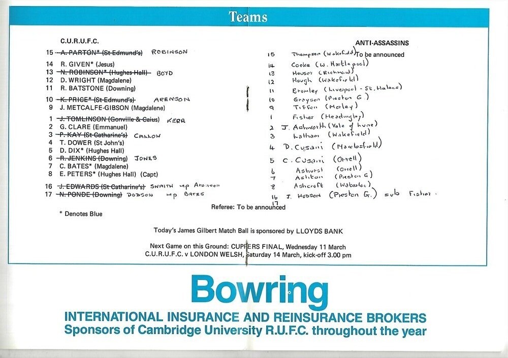 1991/92 Cambridge University v Anti-Assasins (04/03/1992) Rugby Union Programme