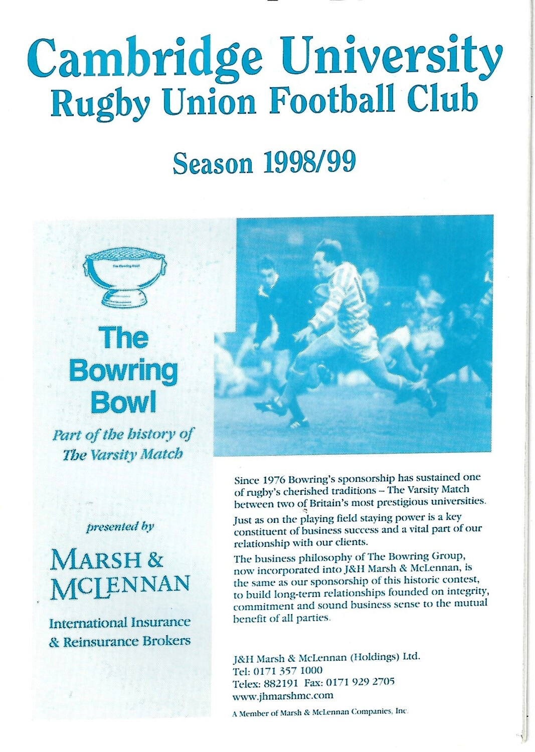 1998/99 Cambridge University v Durham University (16/01/1999) Rugby Union Programme