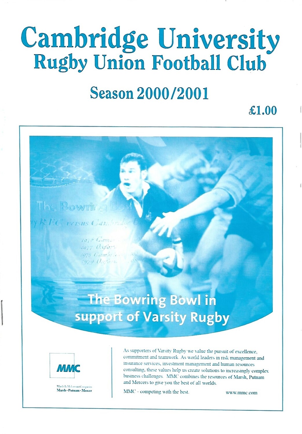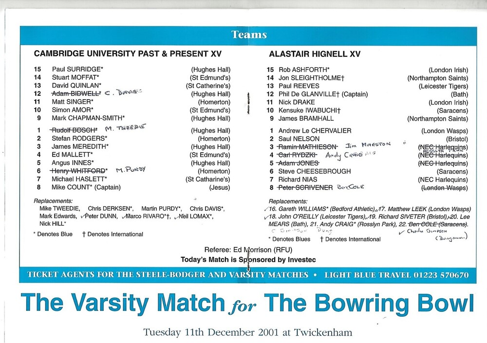 2000/01 Cambridge University (Past & Present) v Alastair Hignell XV (07/03/2001) Rugby Union Programme