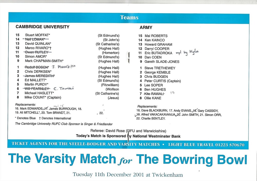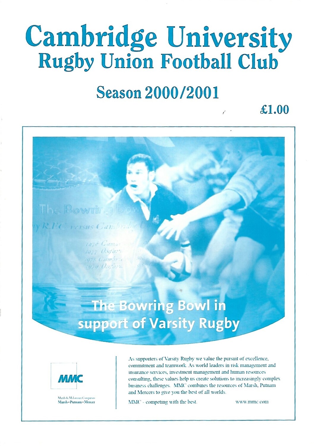 2000/01 Cambridge University v Army (07/02/2001) Rugby Union Programme
