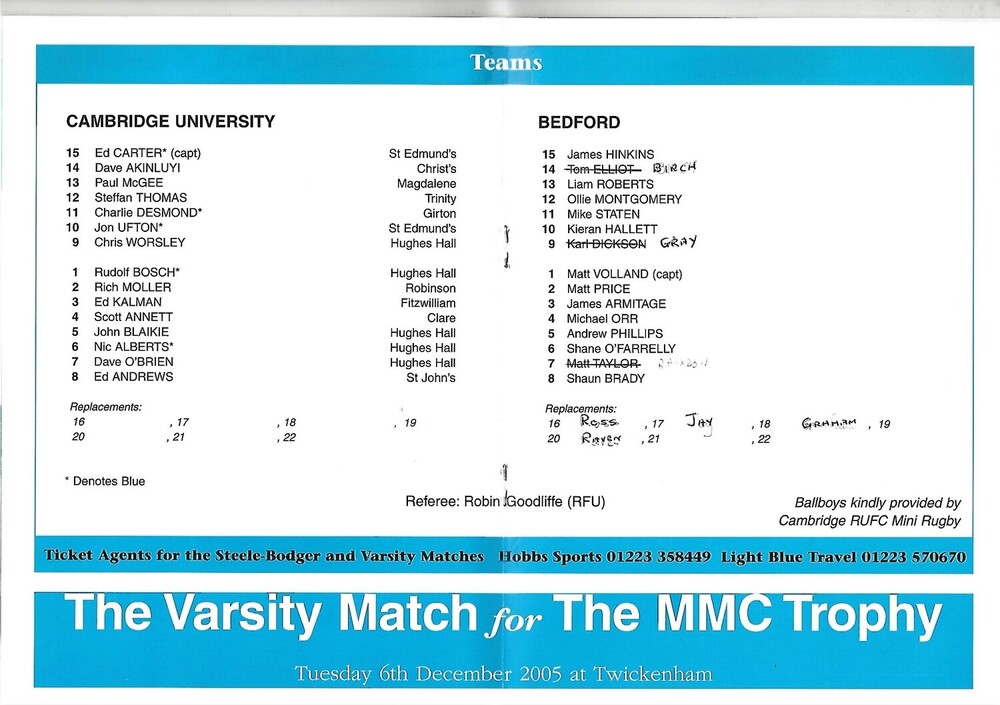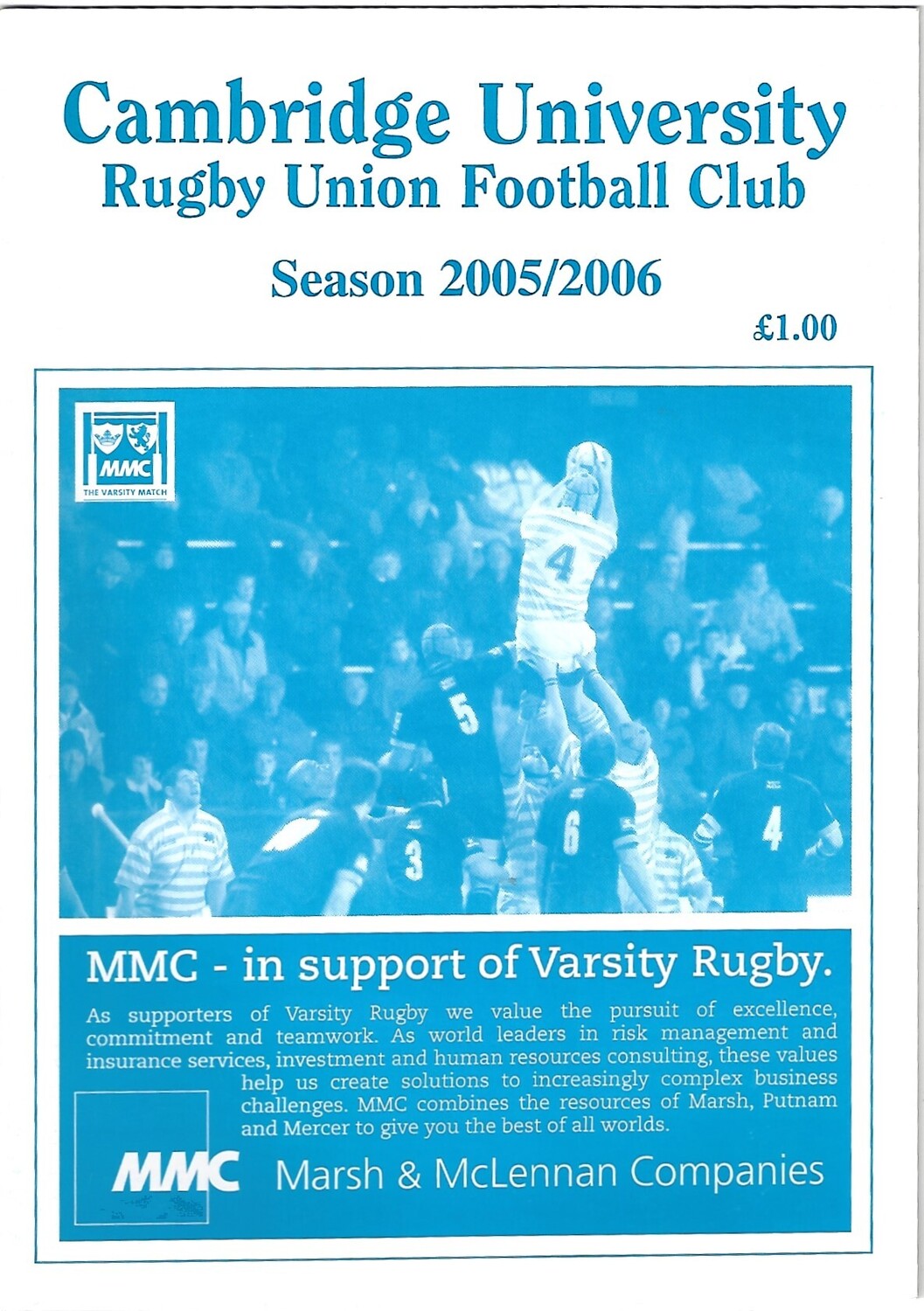 2005/06 Cambridge University v Bedford (18/10/2005) Rugby Union Programme