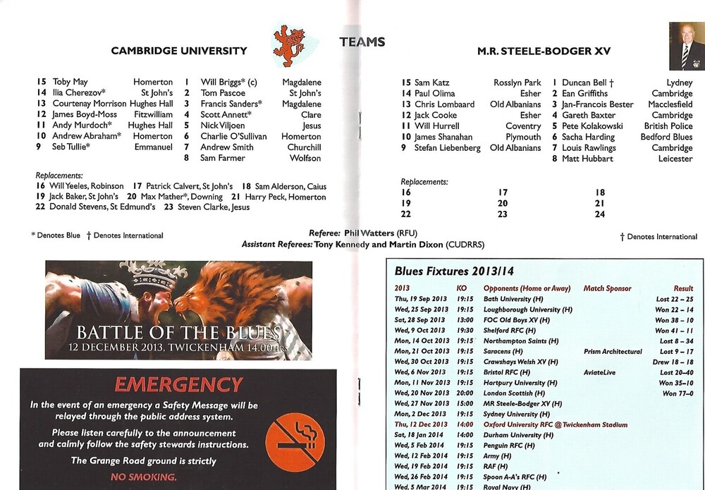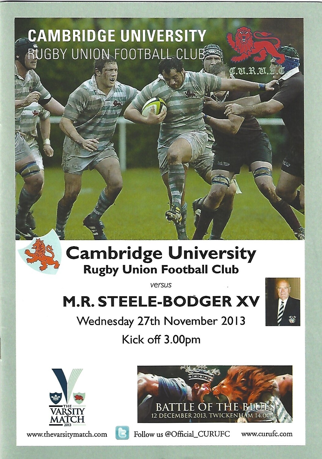 2013/14 Cambridge University v M.R Steele-Bodger's XV (27/11/2013) Rugby Union Programme