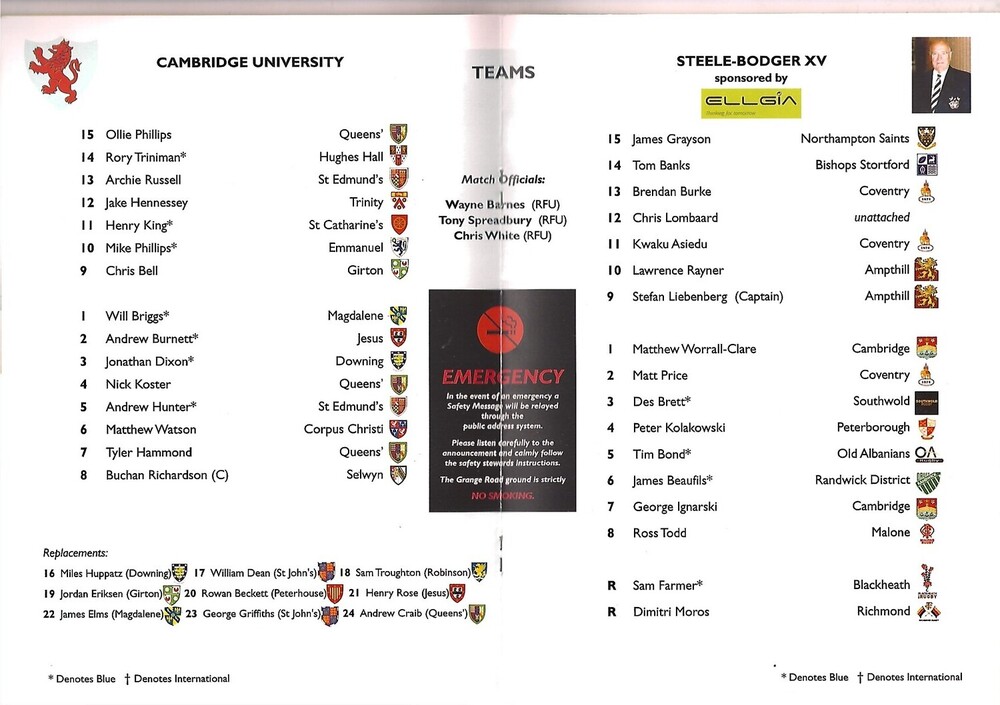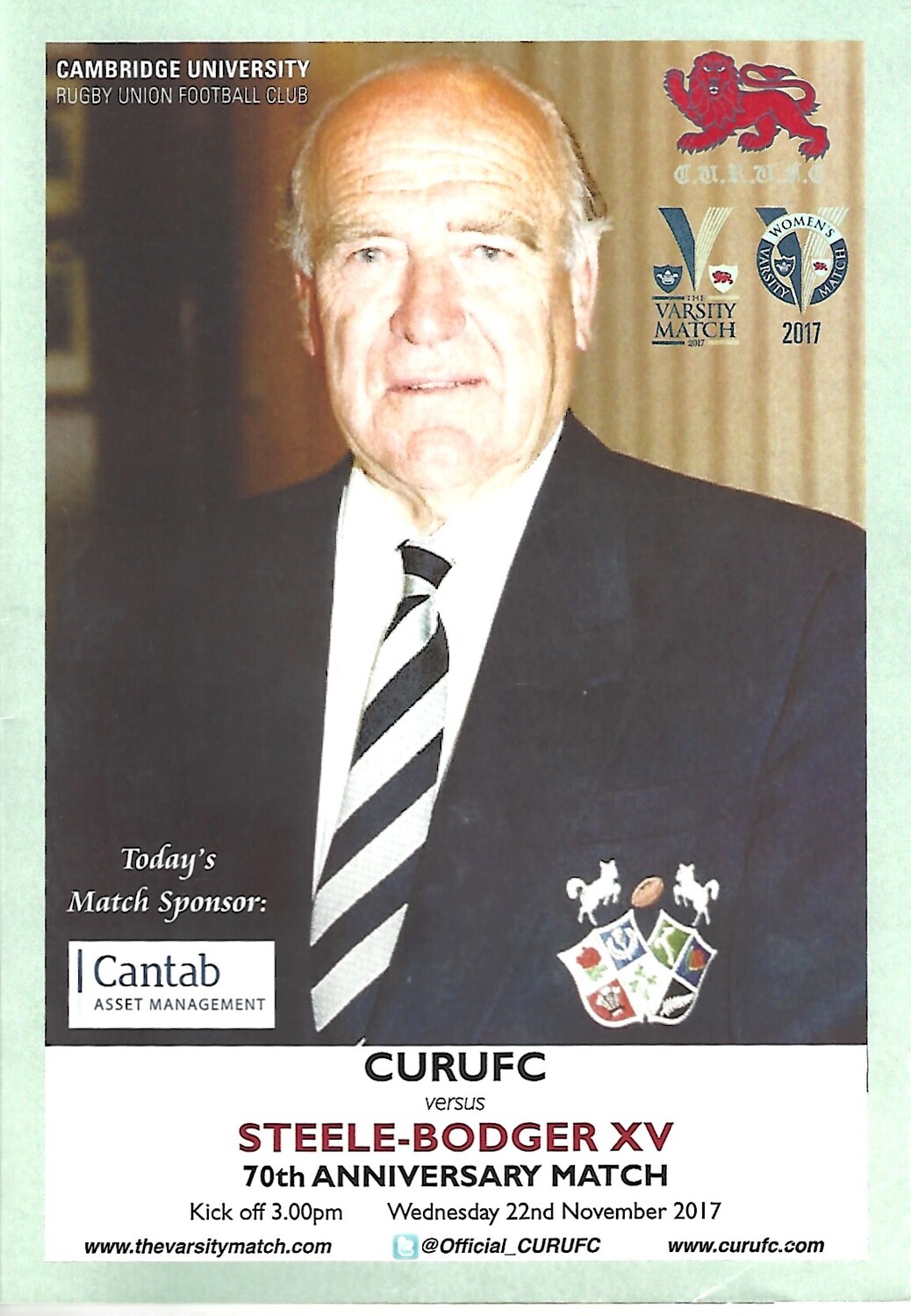 2017/18 Cambridge University v M.R Steele-Bodger's XV 70th Anniversary Match (22/11/2017) Rugby Union Programme