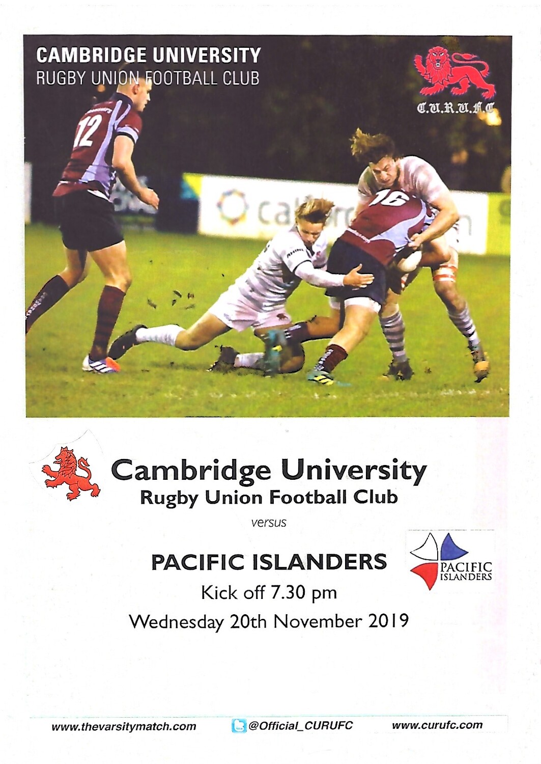 2019/20 Cambridge University v Pacific Islanders (20/11/2019) Rugby Union Programme