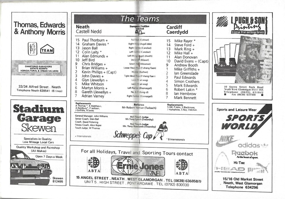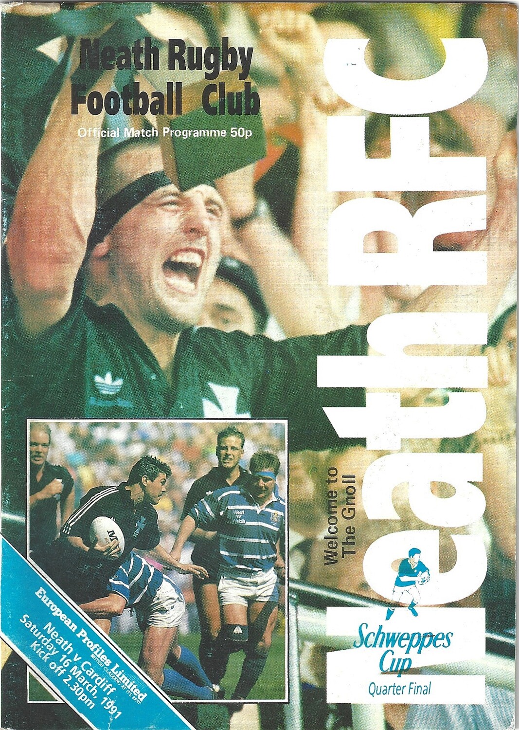 1990/91 Neath v Cardiff WRU Schweppes Cup Quarter Final Rugby Union Programme