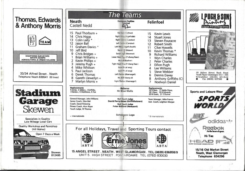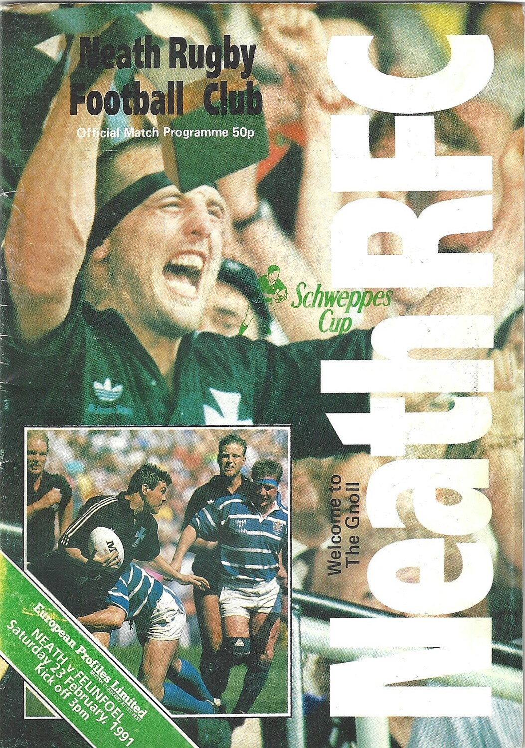 1990/91 Neath v Felinfoel WRU Schweppes Cup 6th Round Rugby Union Programme