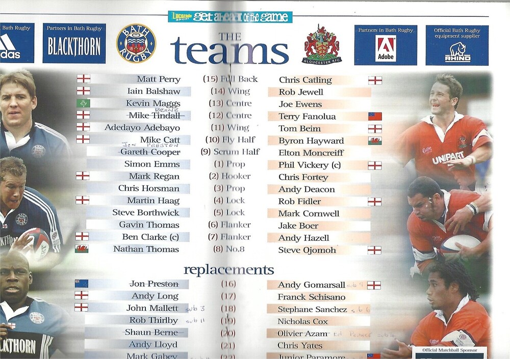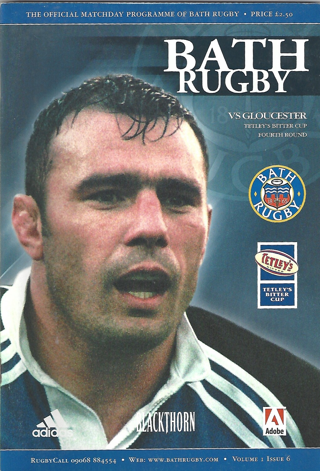 2000/01 Bath v Gloucester Tetley's Bitter Cup Fourth Round Rugby Union Programme
