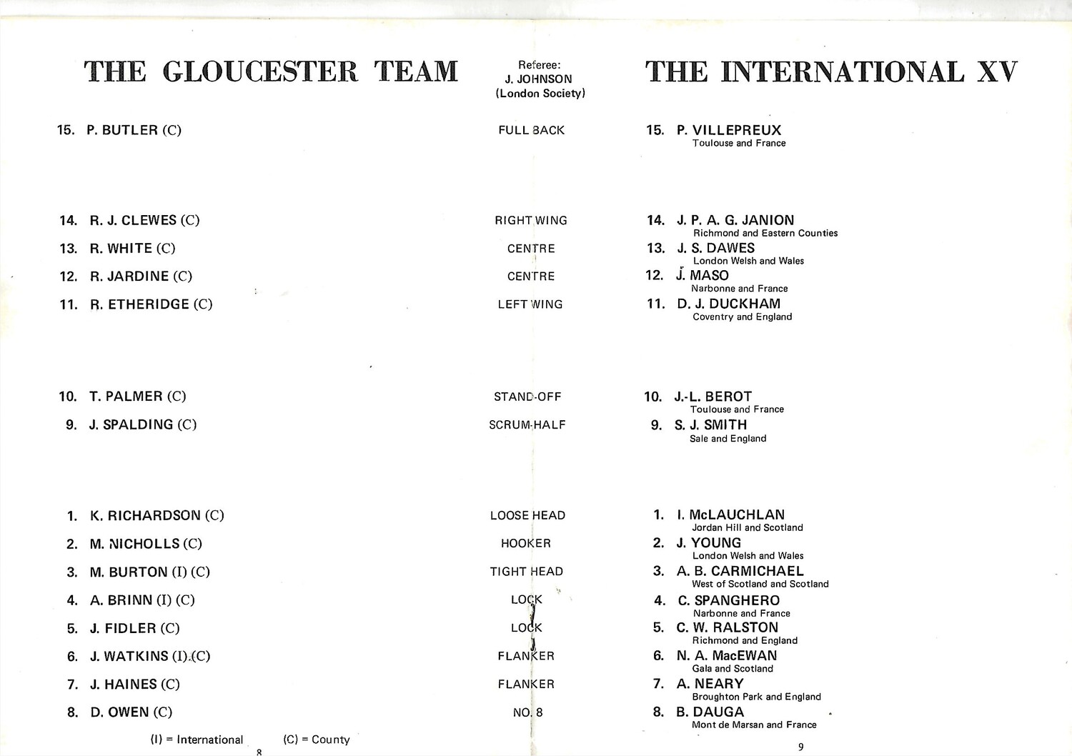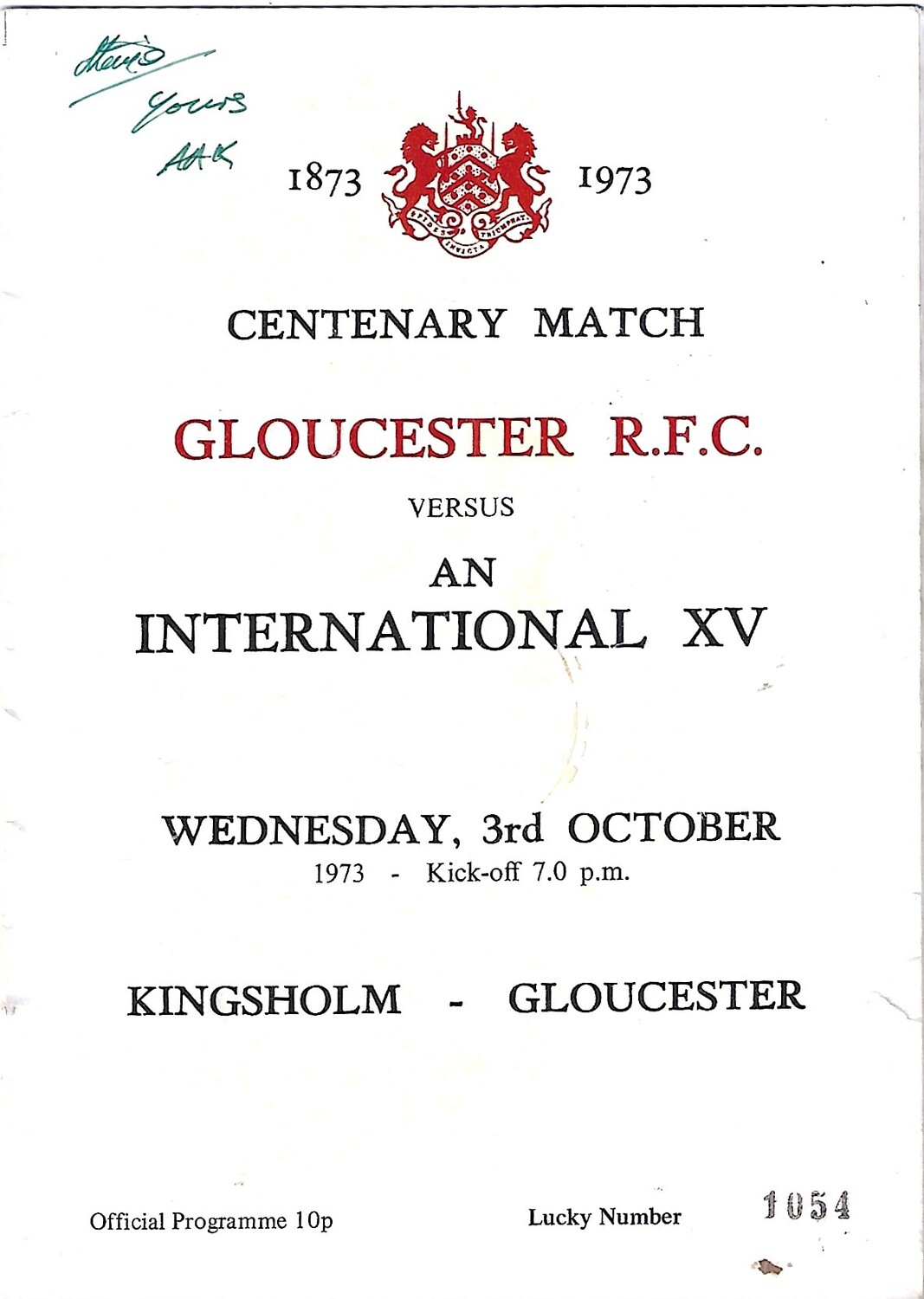 1973 Gloucester v An International XV Centenary Match (03/10/1973) Rugby Union Programme