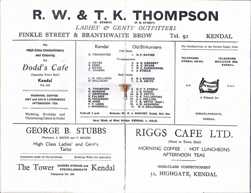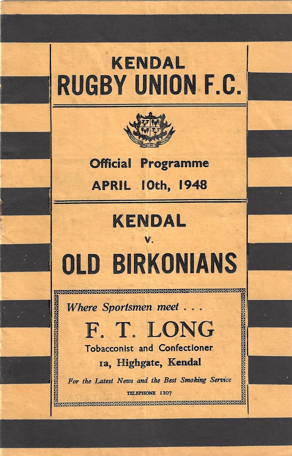 1947/48 Kendal v Old Birkonians Rugby Union Programme