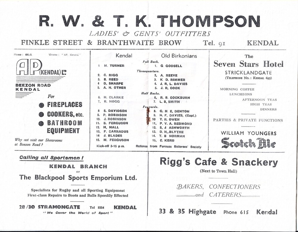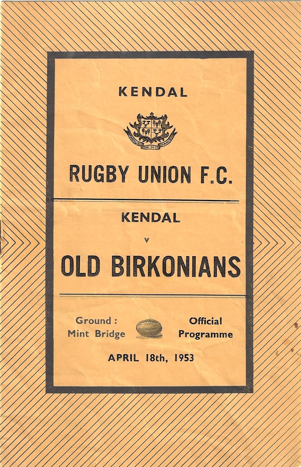 1952/53 Kendal v Old Birkonians Rugby Union Programme