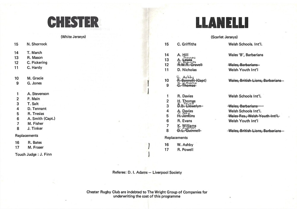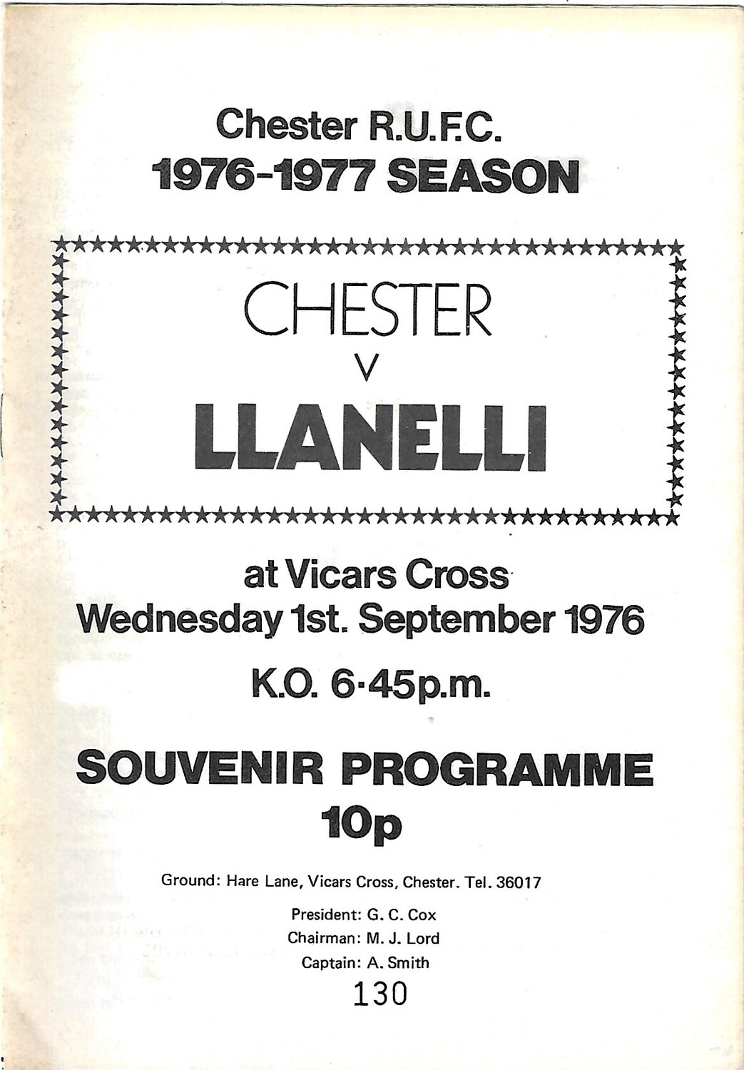 1976/77 Chester v Llanelli (01/09/1976) Rugby Union Programme