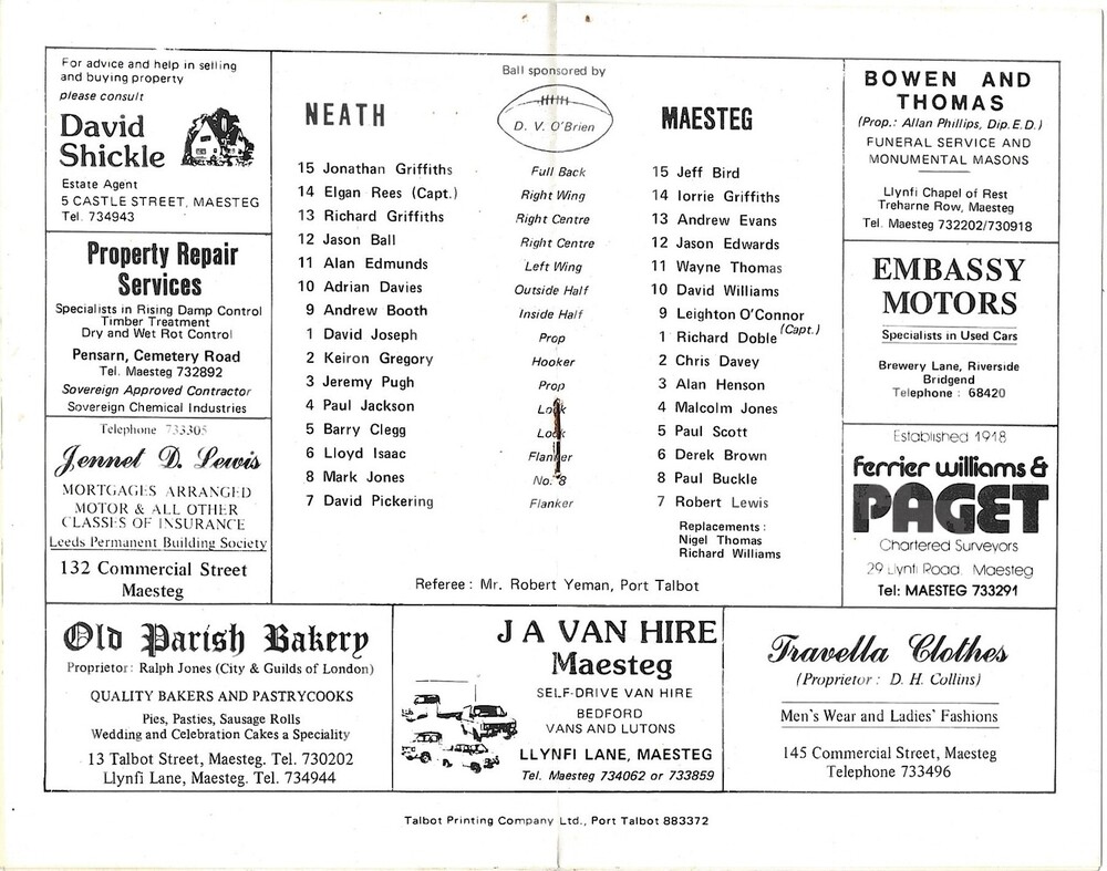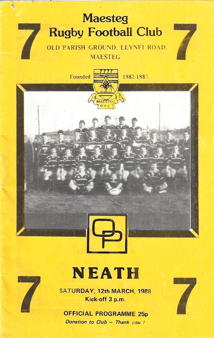 1987/88 Maesteg v Neath Rugby Union Programme