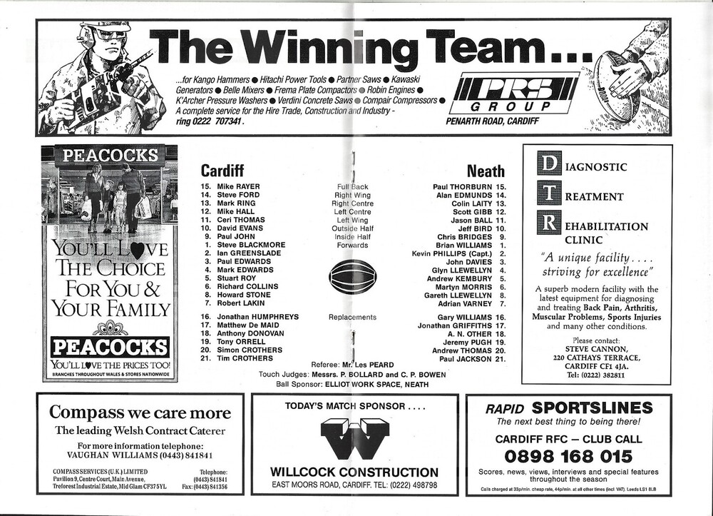 1990/91 Cardiff v Neath Rugby Union Programme