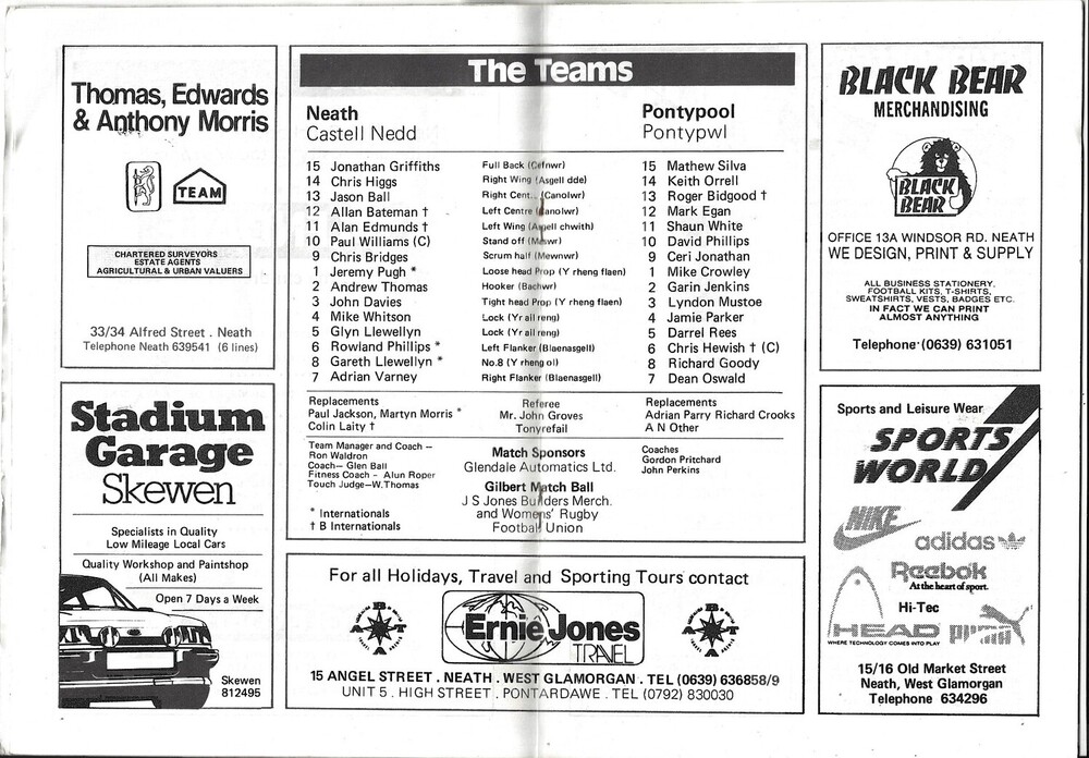 1989/90 Neath v Pontypool Rugby Union Programme