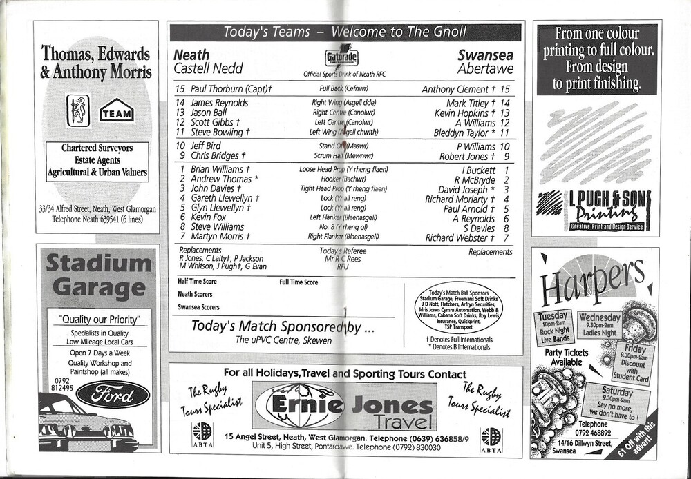 1991/92 Neath v Swansea Rugby Union Programme