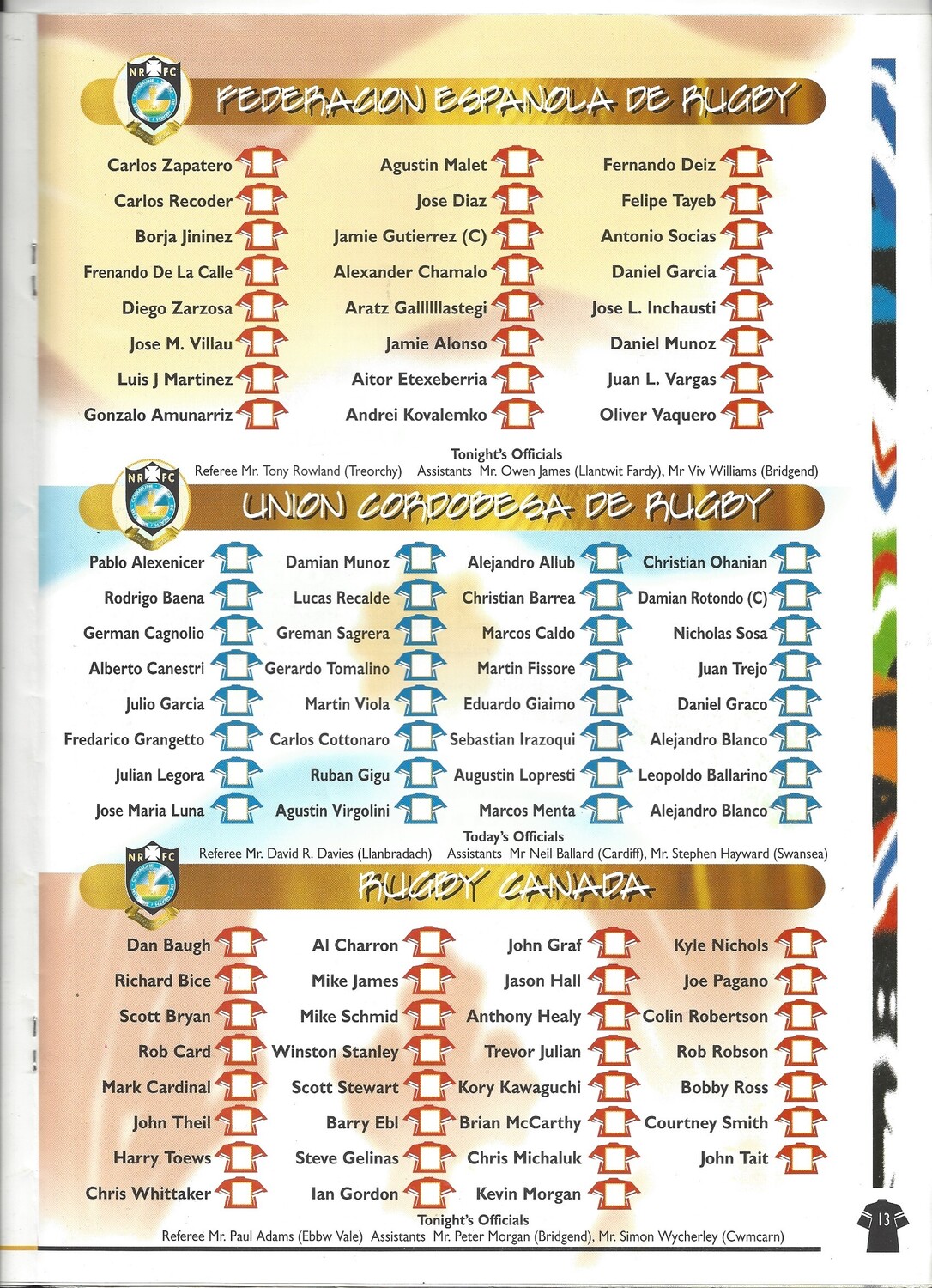 1998 Neath v Spain/Cordoba/Rugby Canada Rugby Union Programme