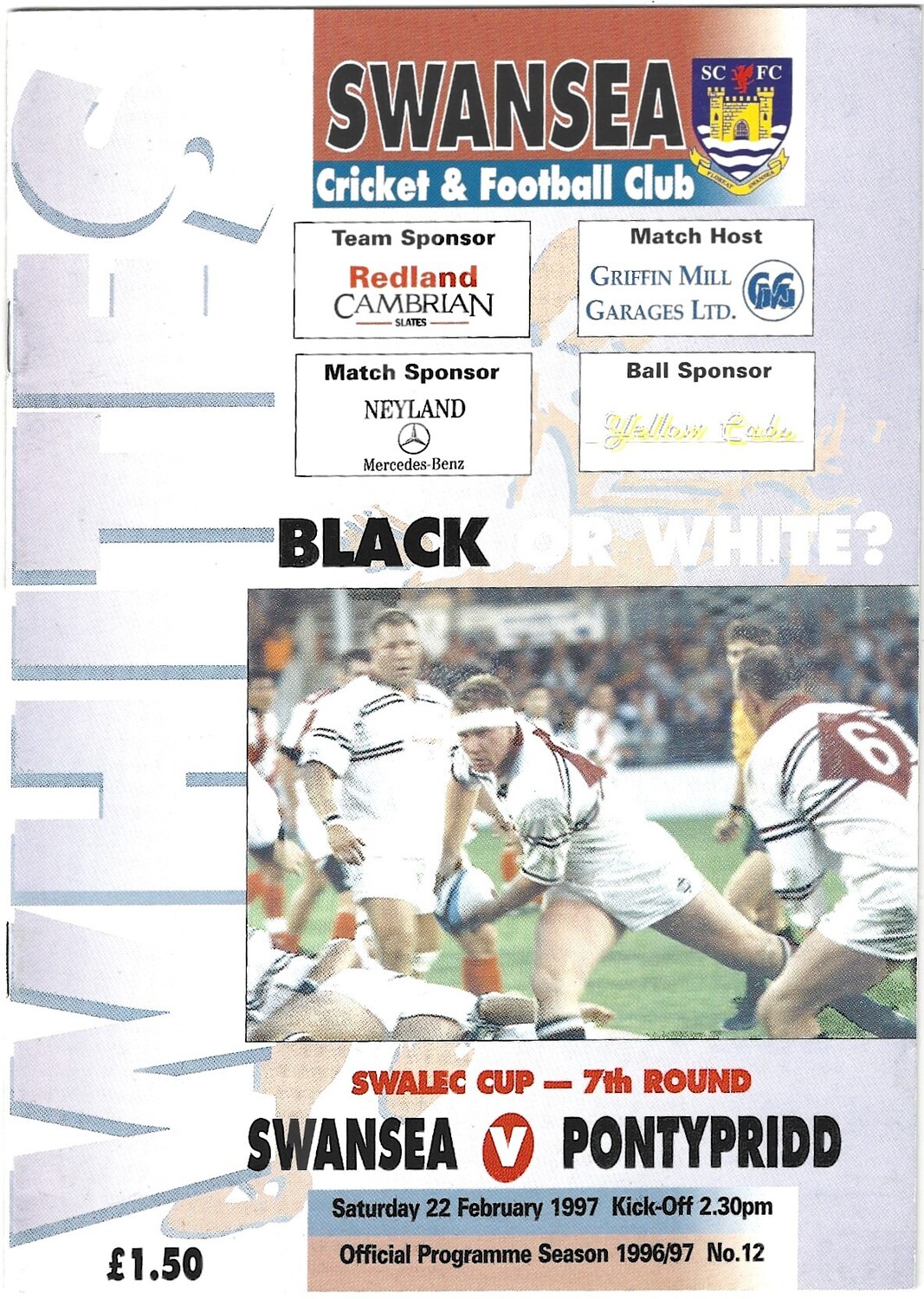 1996/97 Swansea v Pontypridd WRU Challenge Cup (SWALEC) 7th Round Rugby Union Programme & Match Ticket