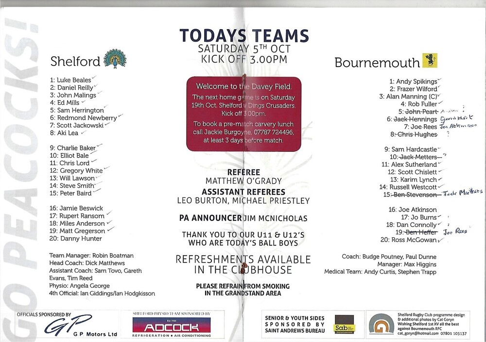 2013/14 Shelford v Bournemouth (05/10/2013) Rugby Union Programme