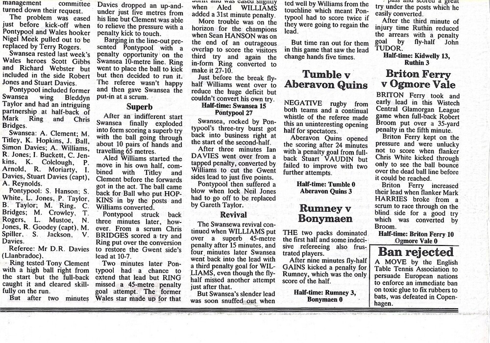 1992/93 Swansea v Pontypool Rugby Union Programme