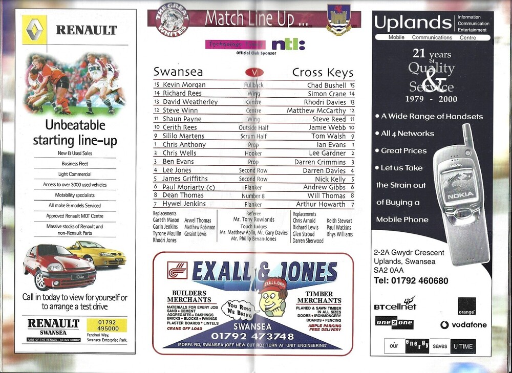2000/01 Swansea v Cross Keys Rugby Union Programme