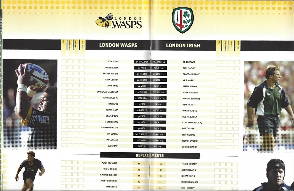 2003/04 London Wasps v London Irish Rugby Union Programme