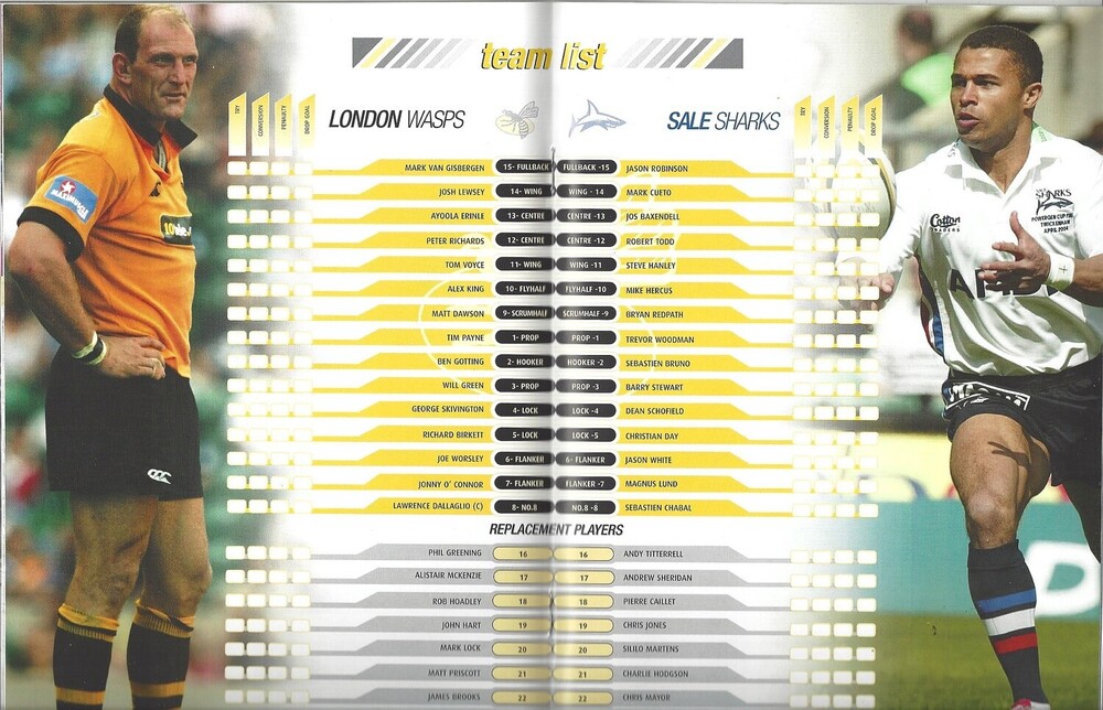 2004/05 London Wasps v Sale Sharks Rugby Union Programme