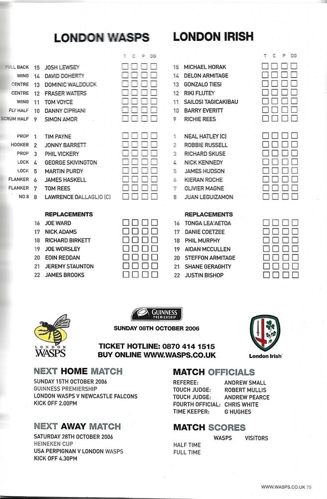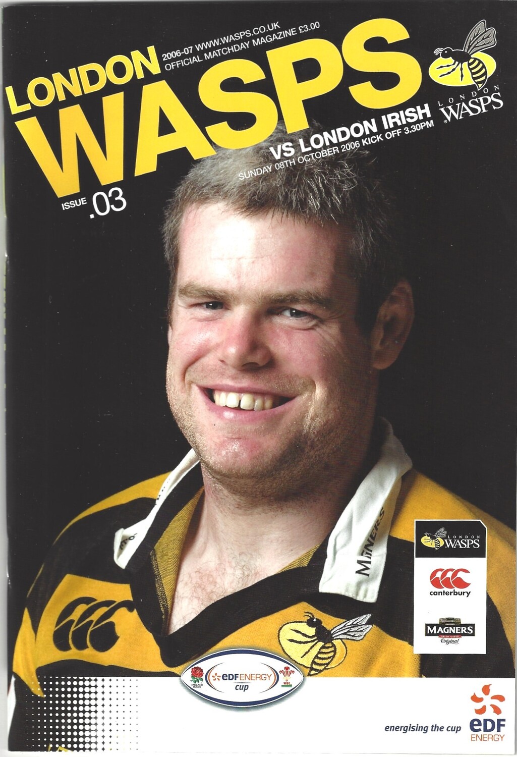 2006/07 London Wasps v London Irish EDF Energy Cup Pool Match Rugby Union Programme