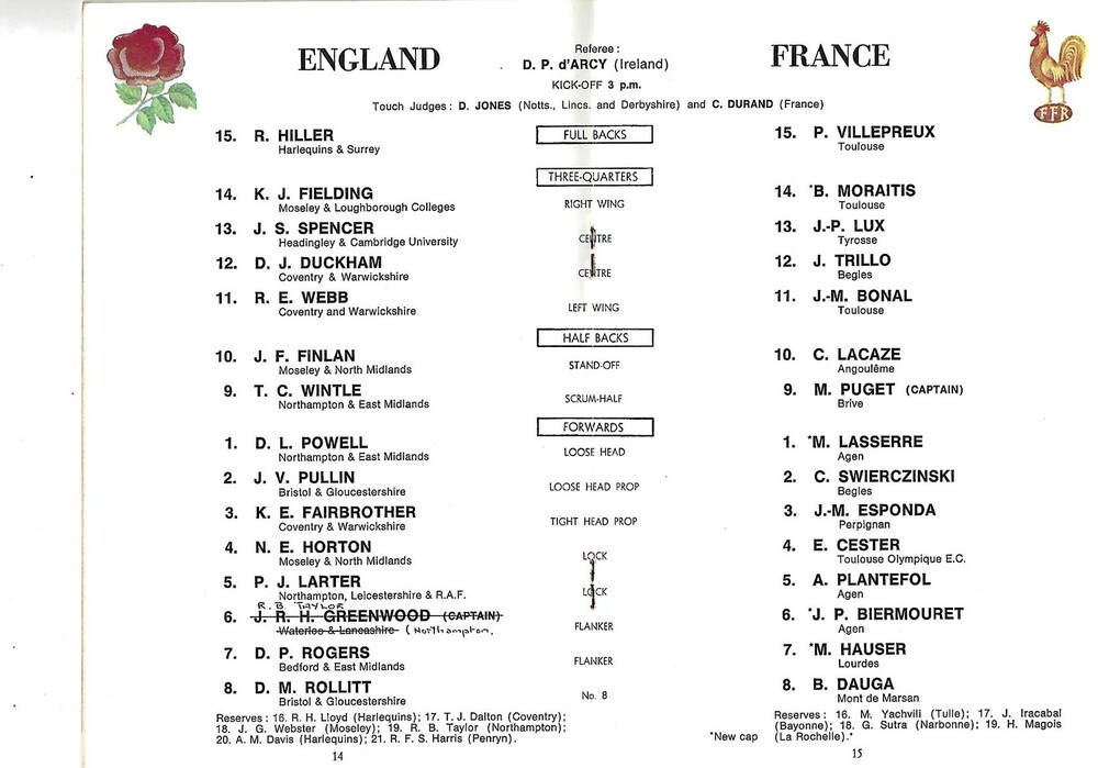 1969 England v France Five Nations Rugby Union Programme