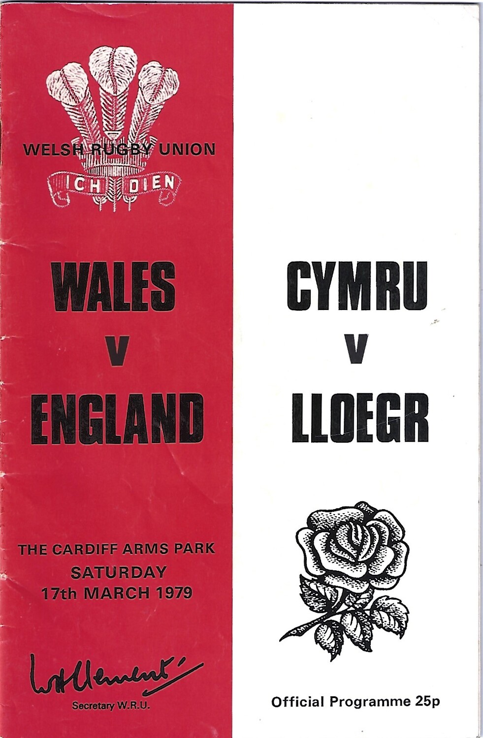 1979 Wales v England (17/03/1979) Five Nations Rugby Union Programme