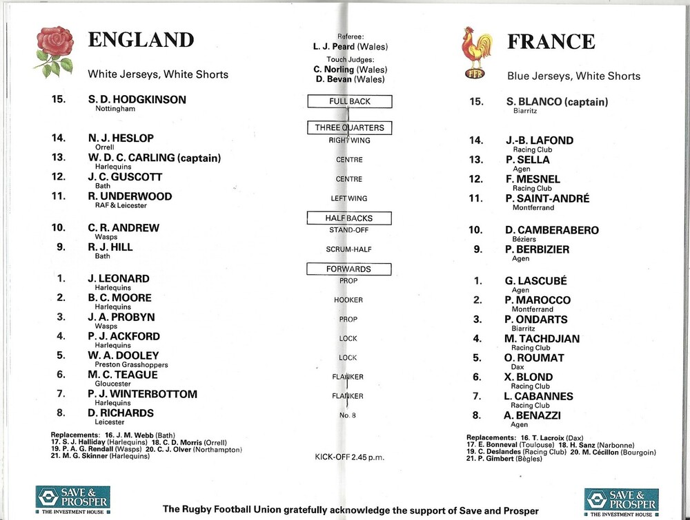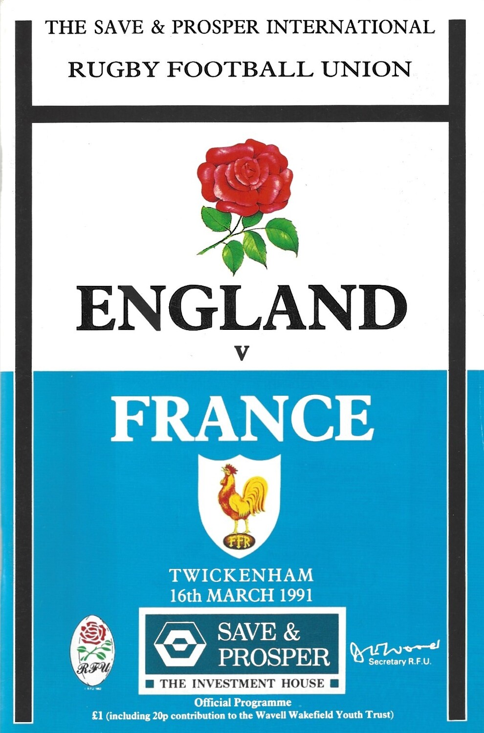 1991 England v France 5 Nations Rugby Union Programme