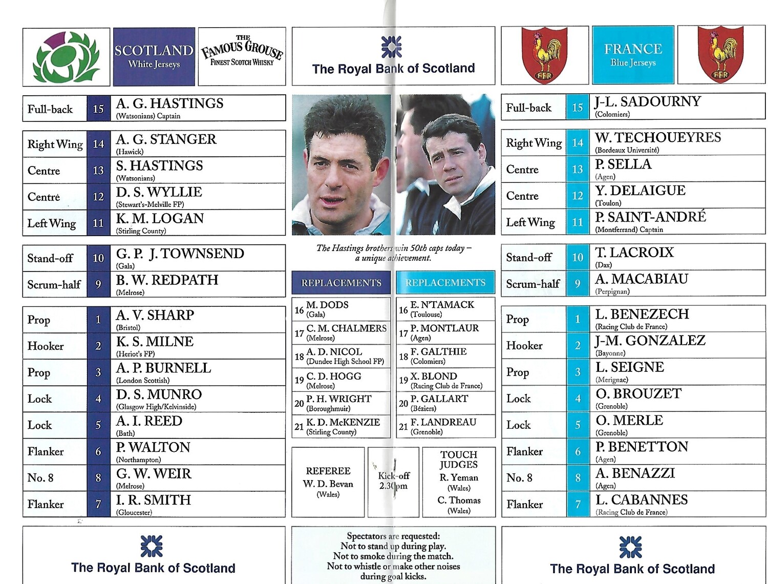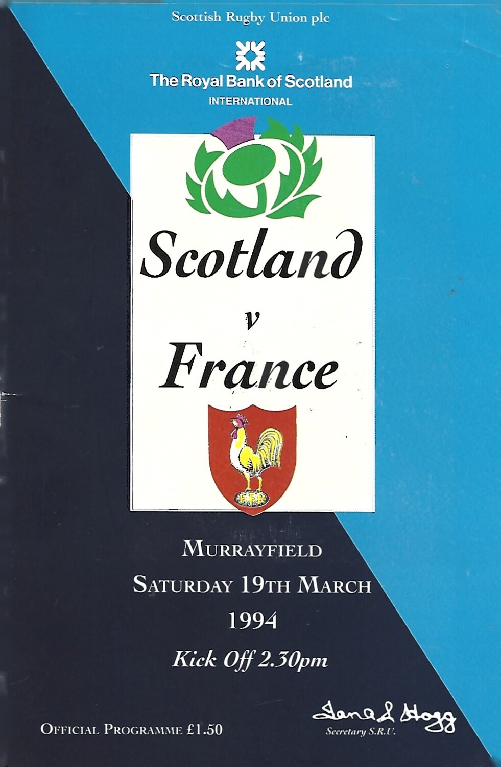 1994 Scotland v France Five Nations Rugby Union Programme & Match Ticket