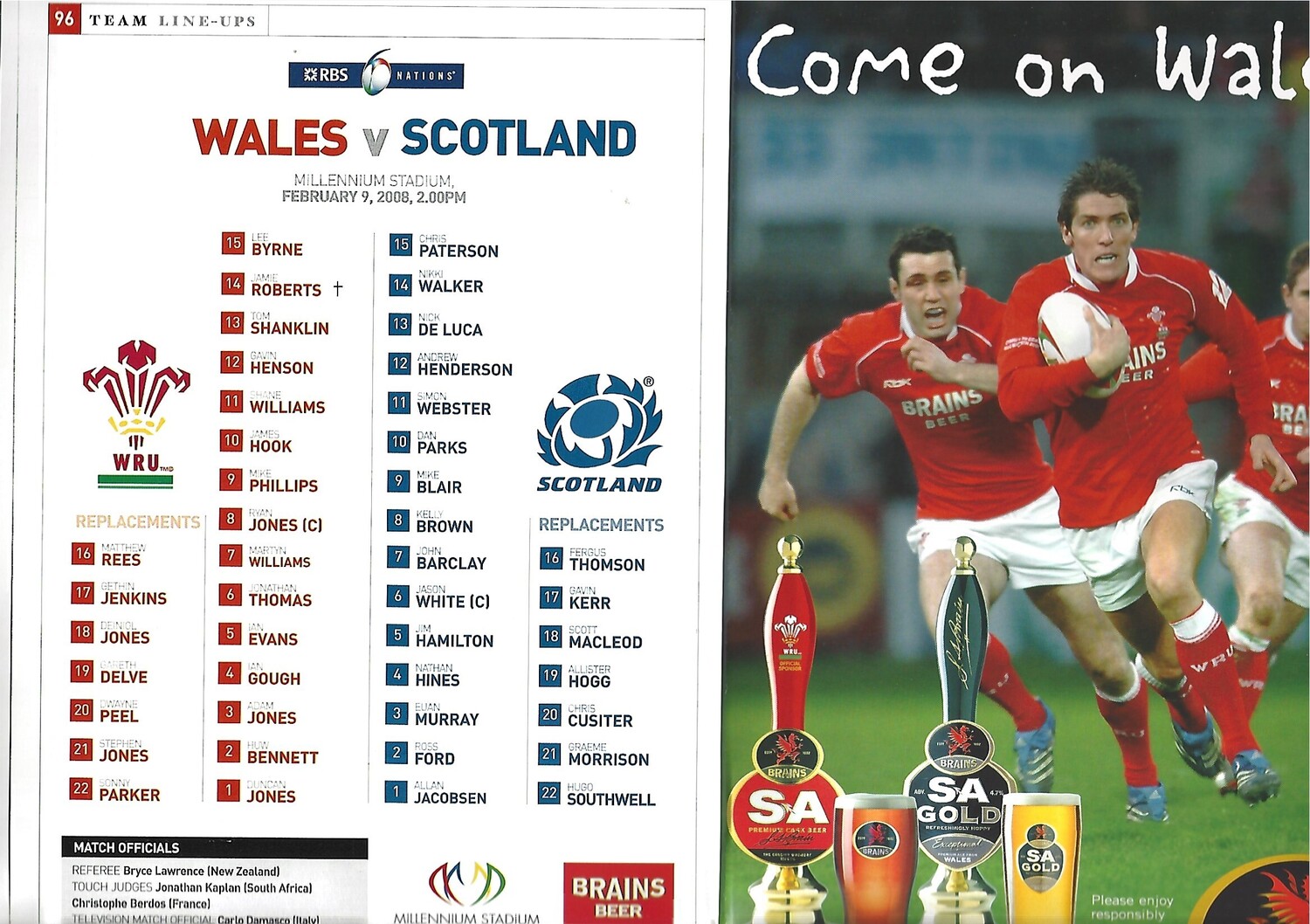 2008 Wales v Scotland (09/02/2008) Six Nations Rugby Union Programme