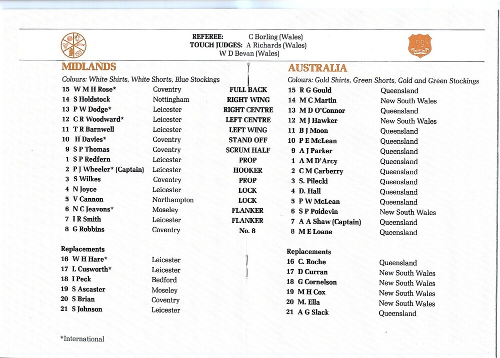 1981/82 Midlands v Australia Tour Match Rugby Union programme