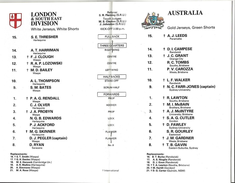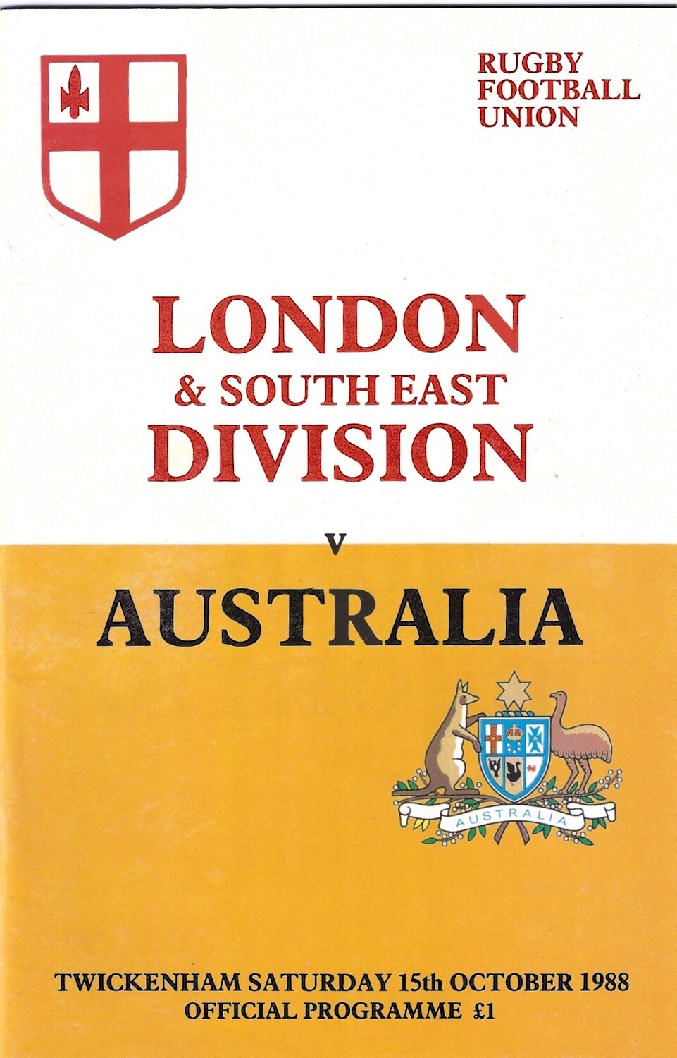 1988/89 London & South East Division v Australia Tour Match Rugby Union Programme