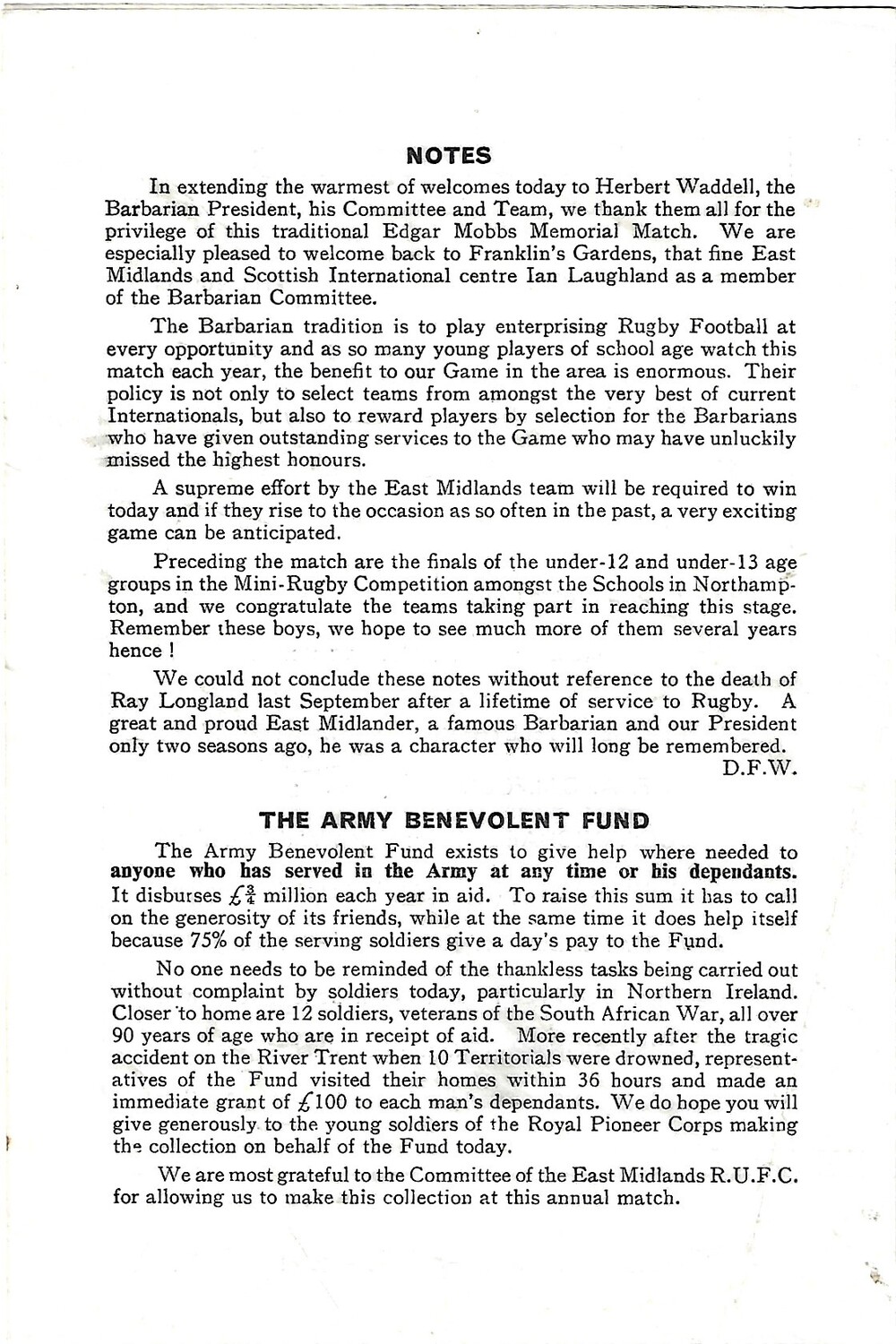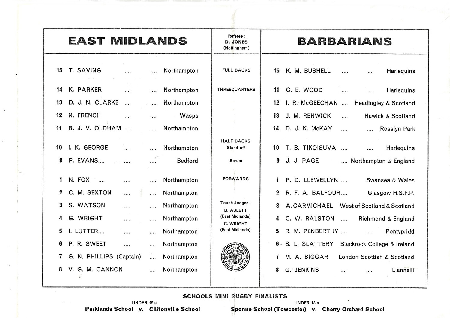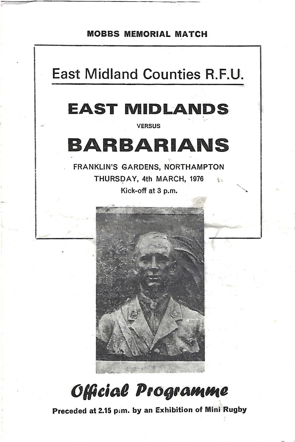 1976 East Midlands v Barbarians (04/03/1976) Mobbs Memorial Match Rugby Union Programme