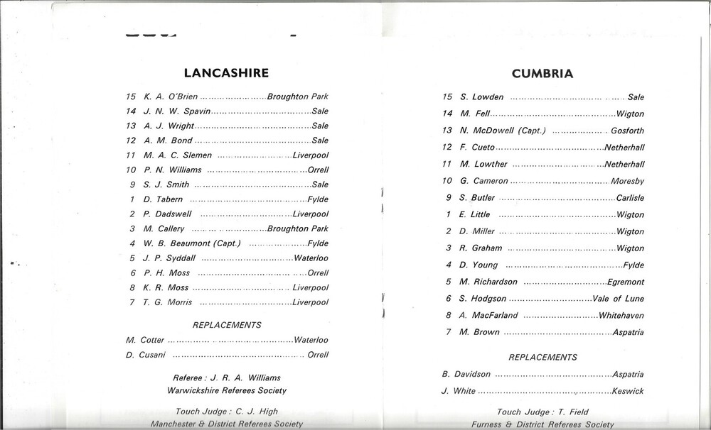 1981/82 Lancashire v Cumbria County Championship Rugby Union programme