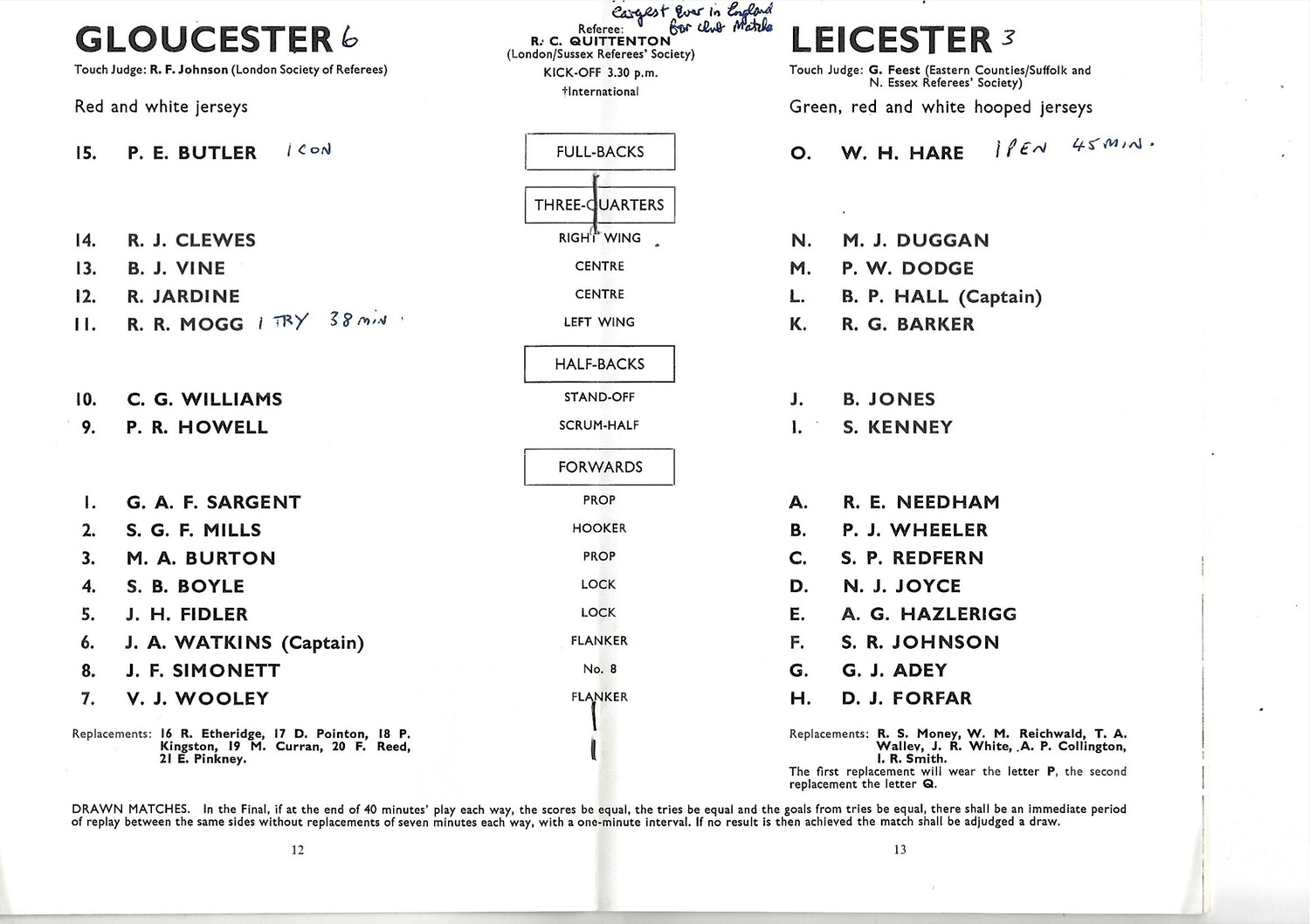 Slight creasing front/rear cover. Score/scores wriiten in ink on team line up page.