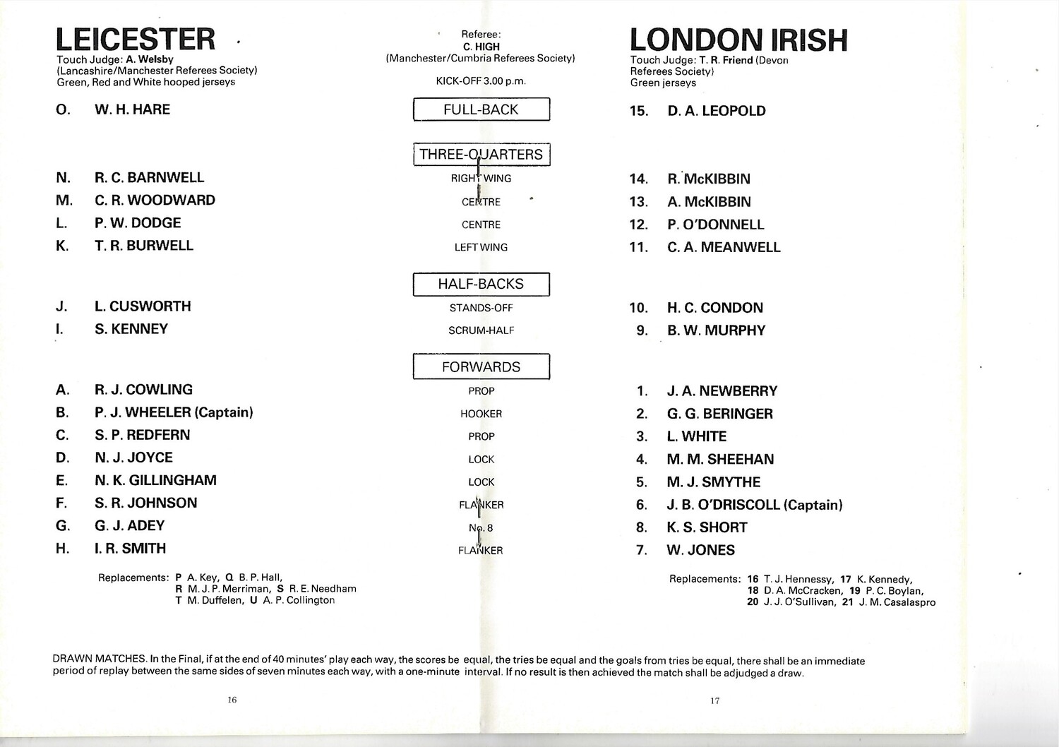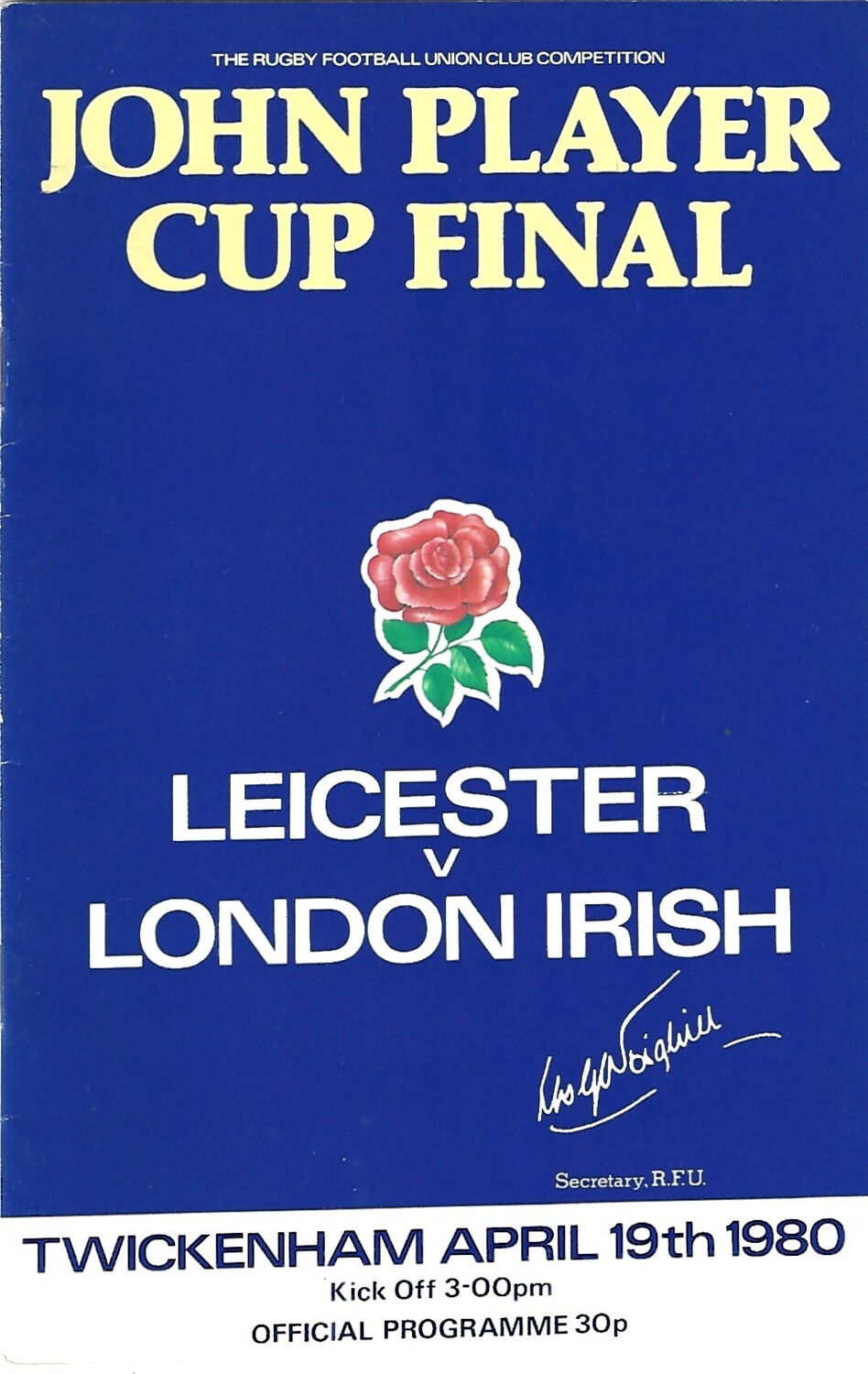 1980 Leicester v London Irish John Player Cup Final Rugby Union Programme