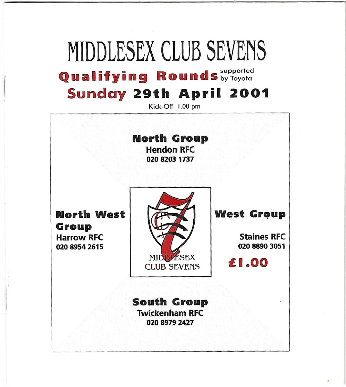 2001 Middlesex Club Sevens Qualifying Rounds Rugby Union Programme