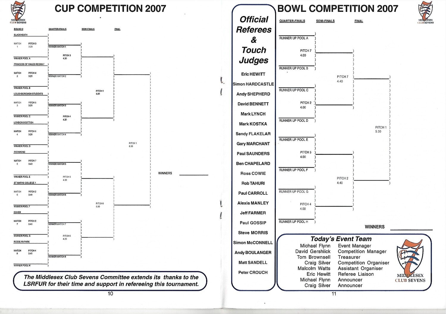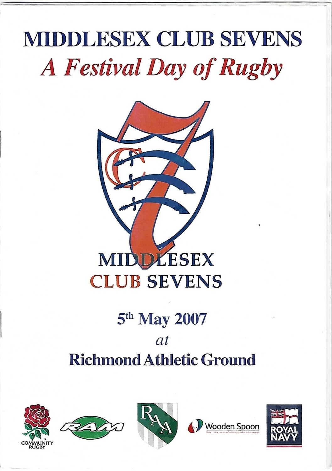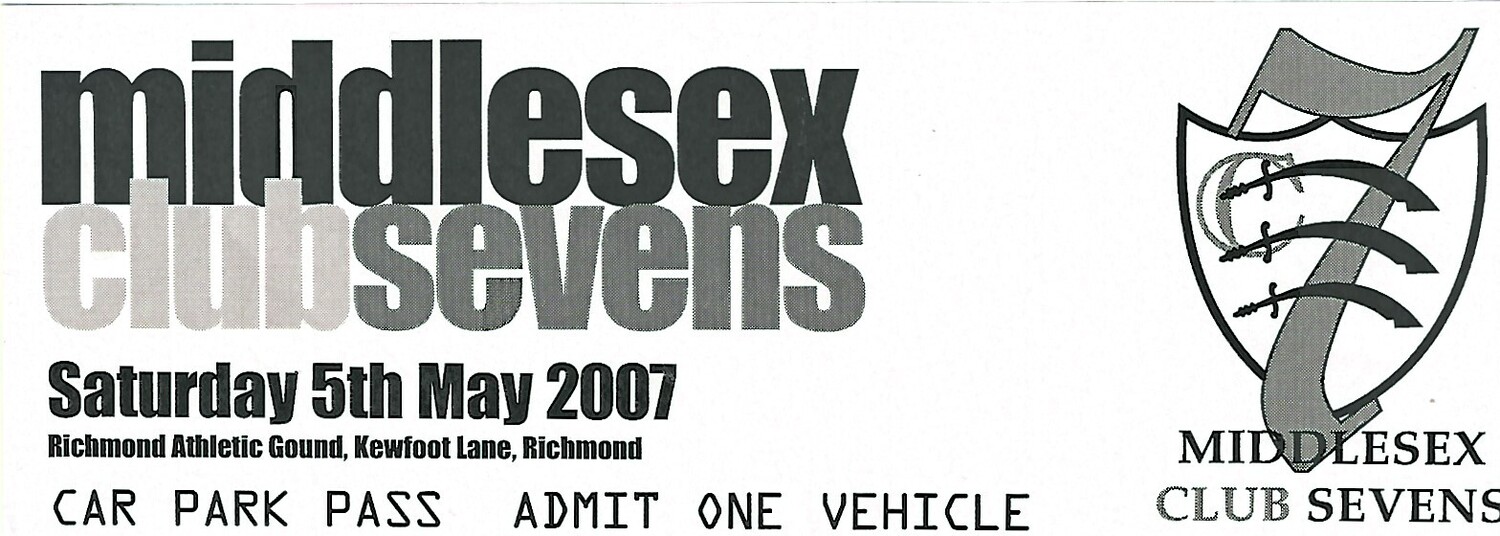 2007 Middlesex Club Sevens Rugby Union Programme & Car Park Pass