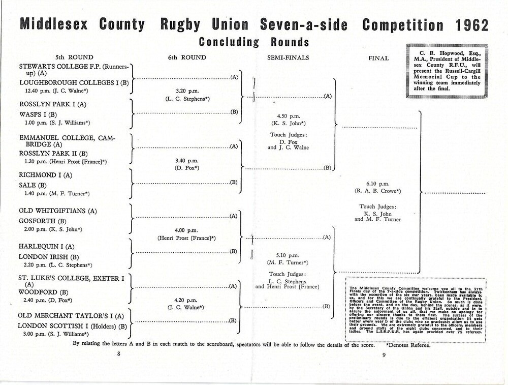 1962 Middlesex Sevens Rugby Union Programme
