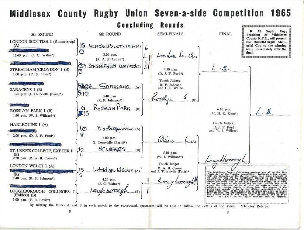 1965 Middlesex Sevens Rugby Union Programme