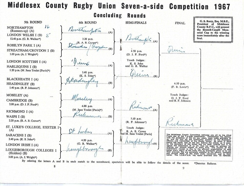 Slight creasing front/rear cover, slight discolouration, rusty staples, team changes/score in ink on team line up page (as per photo)