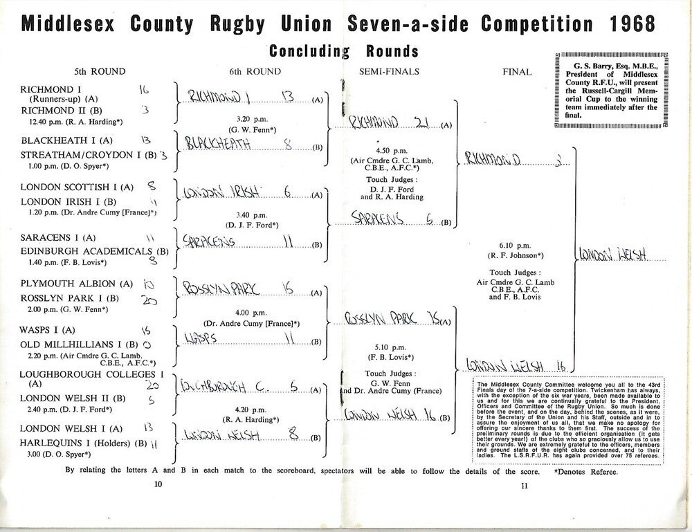 1968 Middlesex Sevens Rugby Union Programme