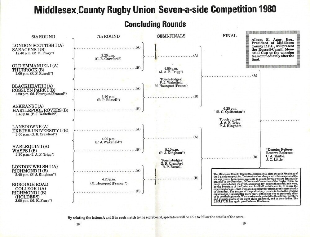 1980 Middlesex Sevens Rugby Union Programme