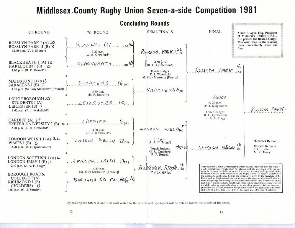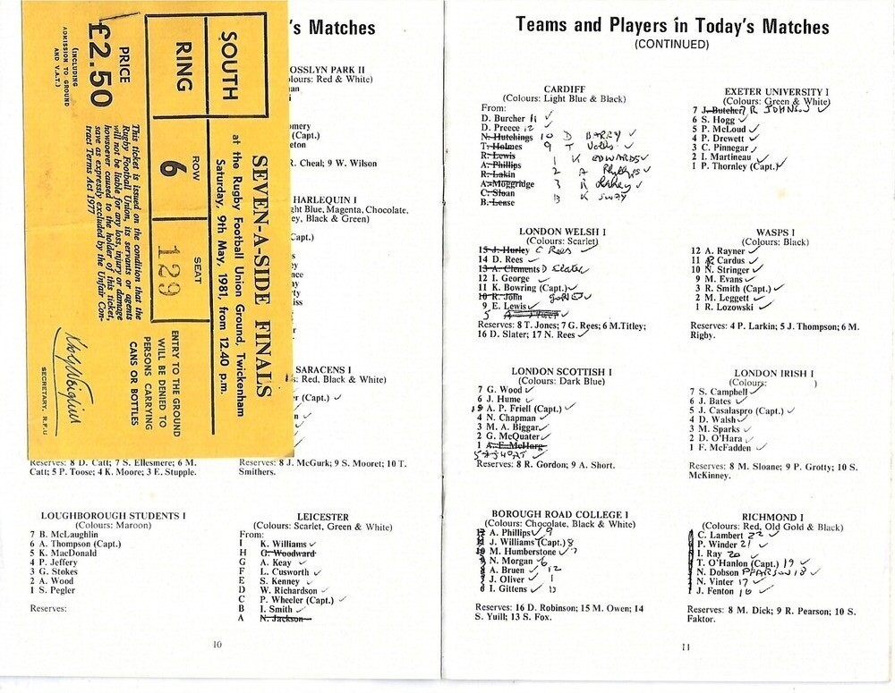 1981 Middlesex Sevens Rugby Union Programme & Match Ticket